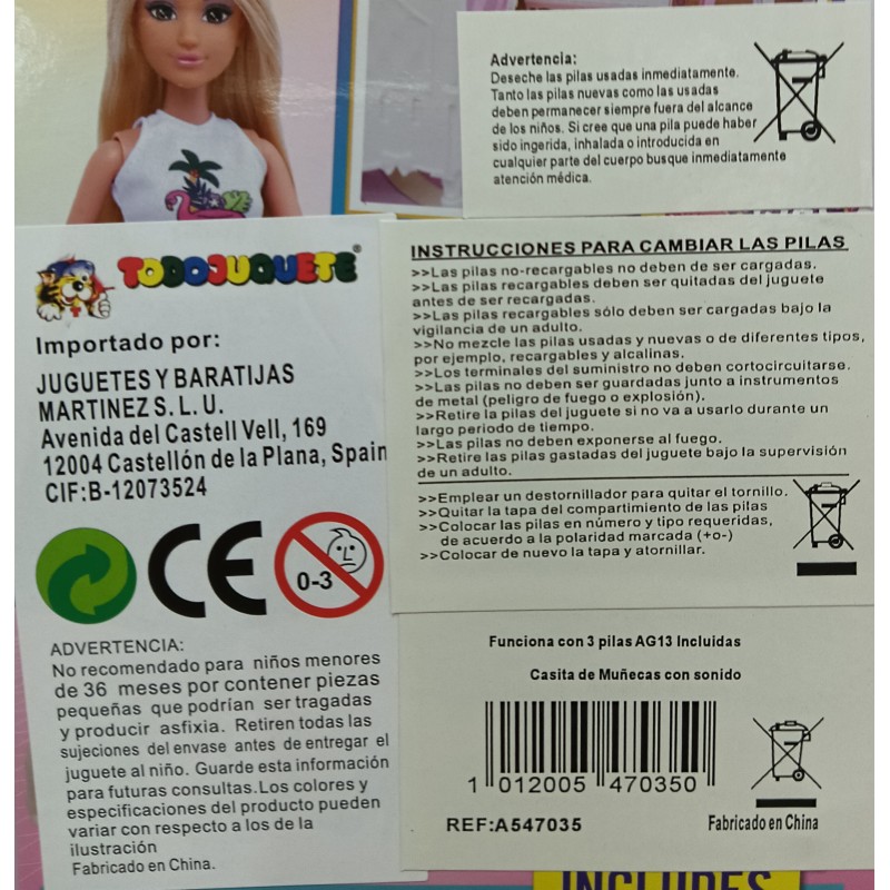 La casita cuenta con sonido y funciona con tres pilas AG13 incluidas.