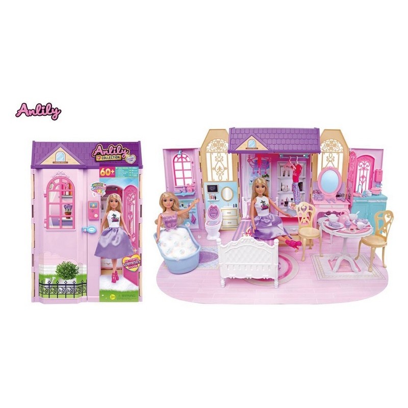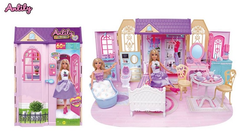 Esta casita con muñeca de 30 cm se abre para convertirse en un amplio espacio de 74x37 cm, ideal para organizar todas las estancias y decorar con los muebles, accesorios y complementos incluidos.