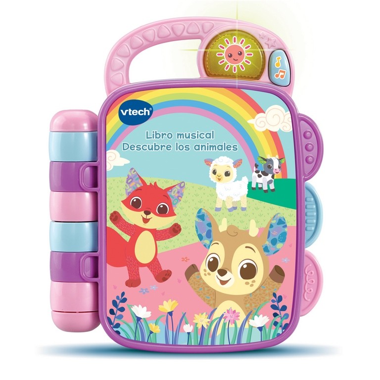 ¡Canta y aprende con tus amigos los animales! Este adorable libro de animales es perfecto para que los más peques exploren y aprendan. El botón luminoso enseña animales y sus sonidos en cada página. El botón musical activa divertidas melodías para que los peques se muevan mientras juegan.