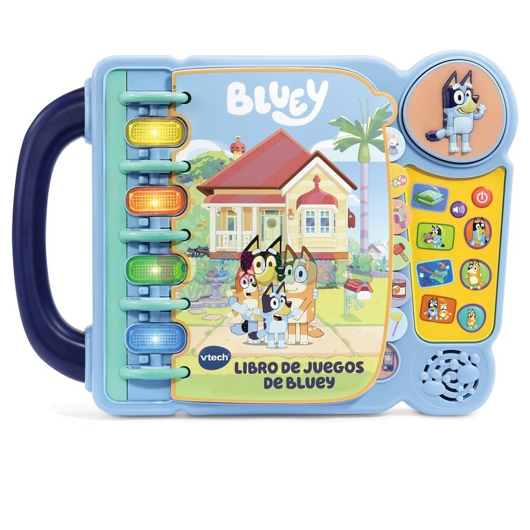 - Incluye 4 modos de juego, 14 páginas ilustradas y la portada, 4 grandes botones de colores con luz y 4 botones de personajes, que junto a la voz de Bluey y Bingo acompañarán el juego en todo momento para animar a los niños a aprender a leer mientras disfrutan con sus personajes favoritos.