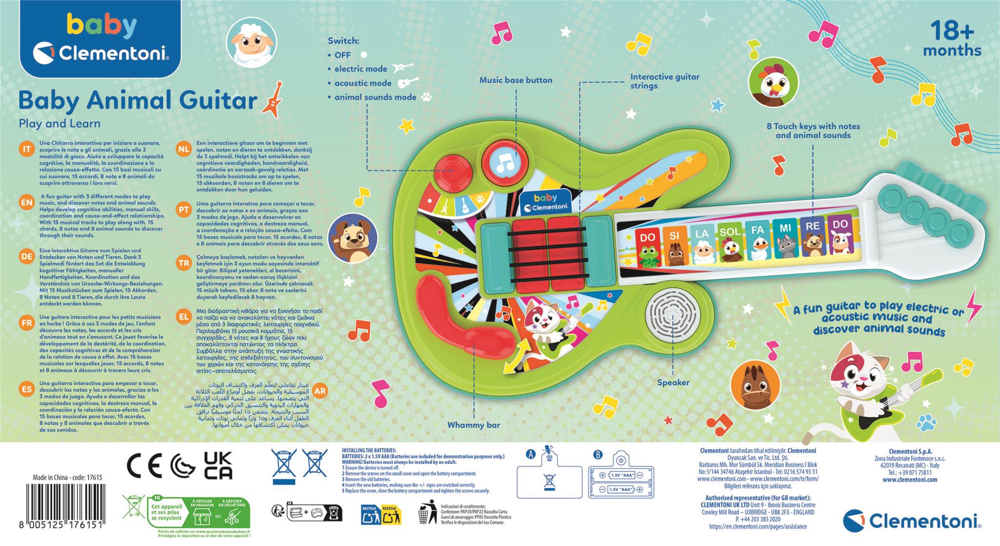 Guitarra interactiva con 8 teclas, cuerds, una tecla para las bases musicales y una palanca de vibrato para descubrir el ritmo jugando.