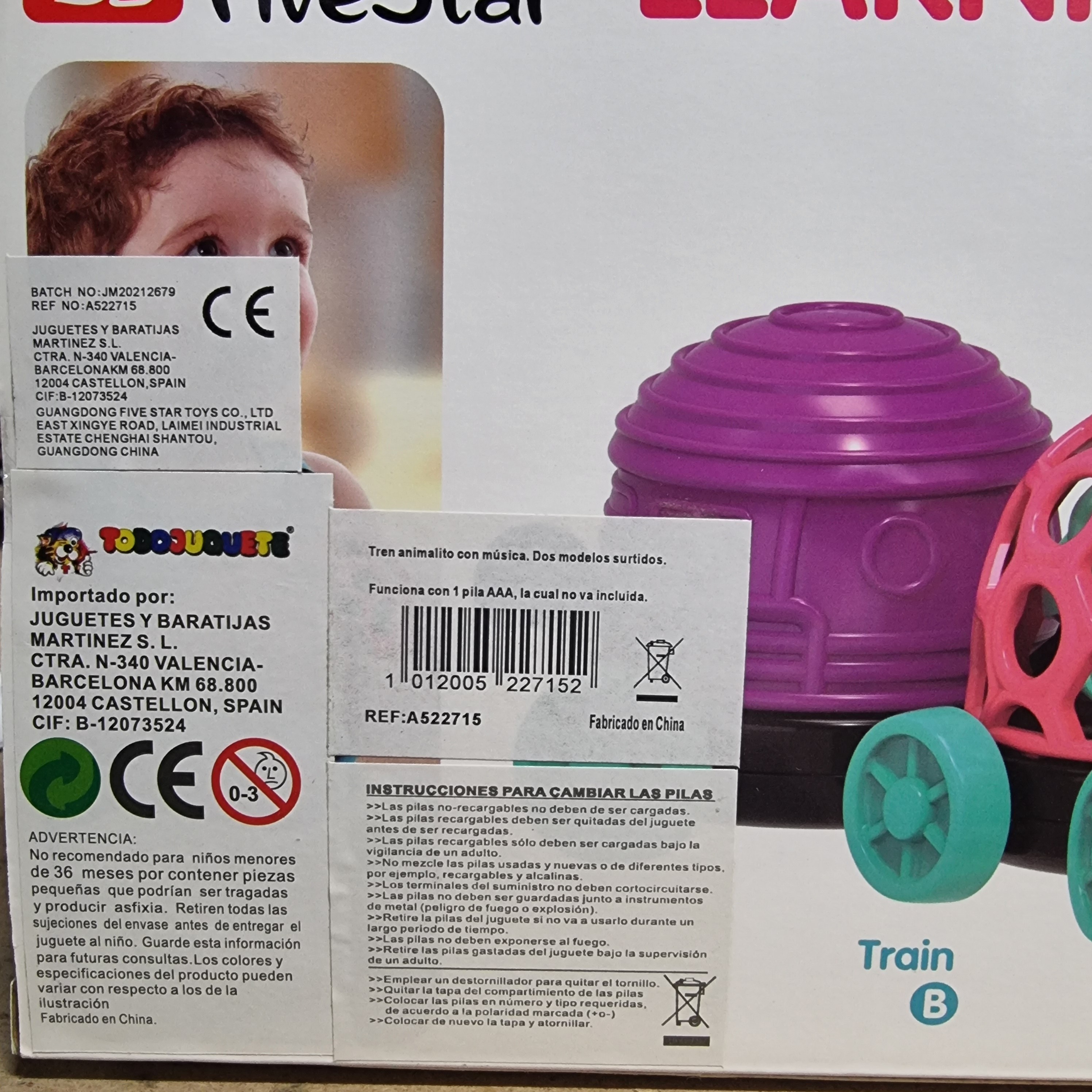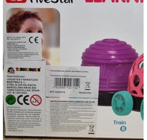 Tren infantil formado por tres partes coloridas que se unen entre sí.