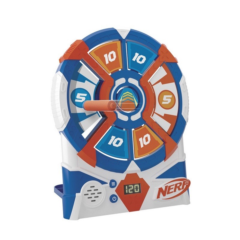 ¡Mejora tu puntería con NERF Strike `N Score: Edición Verde vs Azul! Este dinámico juego de tiro al blanco incluye 6 blancos reactivos, codificados por colores para los equipos Verde y Azul, además de un blanco central Booster que desbloquea efectos adicionales. Elige entre 4 emocionantes modos de juego diseñados para batallas individuales o multijugador. Con efectos de sonido inspirados en los clásicos juegos arcade y un marcador integrado, es la prueba de precisión NERF definitiva: perfecta para practicar en casa o para enfrentamientos competitivos. Colócala sobre cualquier mesa o móntala en la pared: tu zona de batalla, tus reglas. Requiere 3 pilas AAA (no incluidas). Los dardos de espuma y los lanzadores NERF se venden por separado. Con efectos de sonido inspirados en los clásicos juegos arcade y un marcador integrado, es la prueba de precisión NERF definitiva: perfecta para practicar en casa o para competiciones. Colócala sobre cualquier mesa o móntala en la pared: tu campo de batalla, tus reglas.