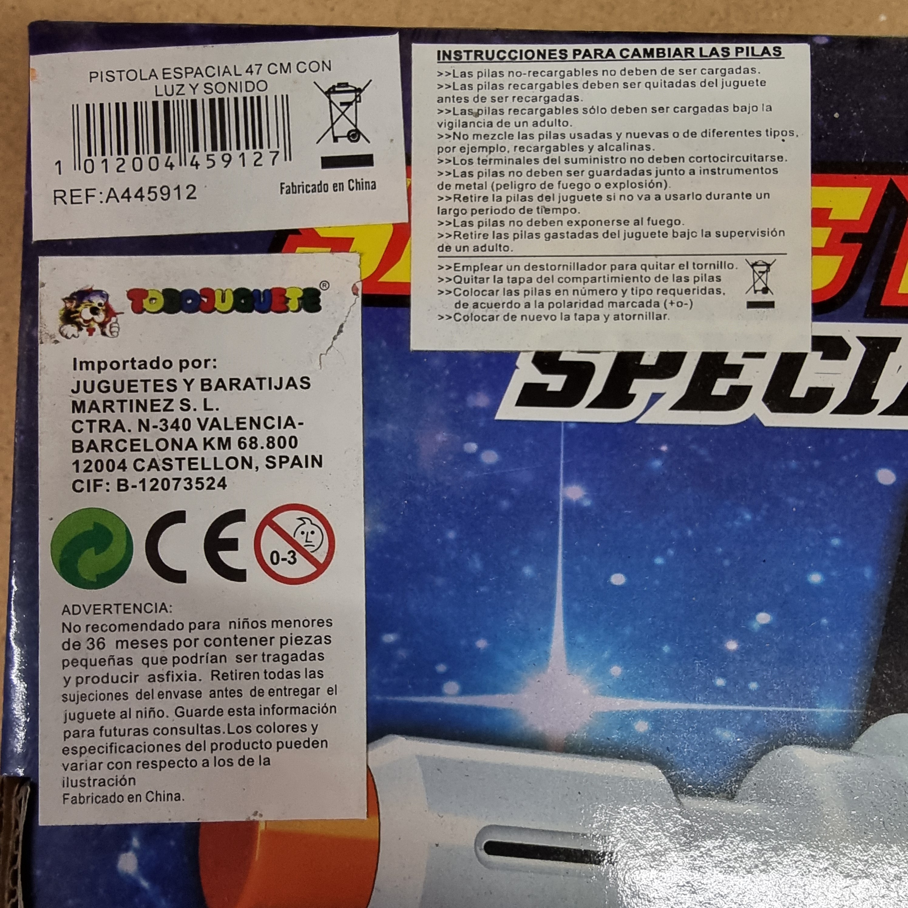 Funciona con 3 pilas AA (no incluidas), lo que permite horas de diversión mientras los niños exploran el universo con su pistola espacial.