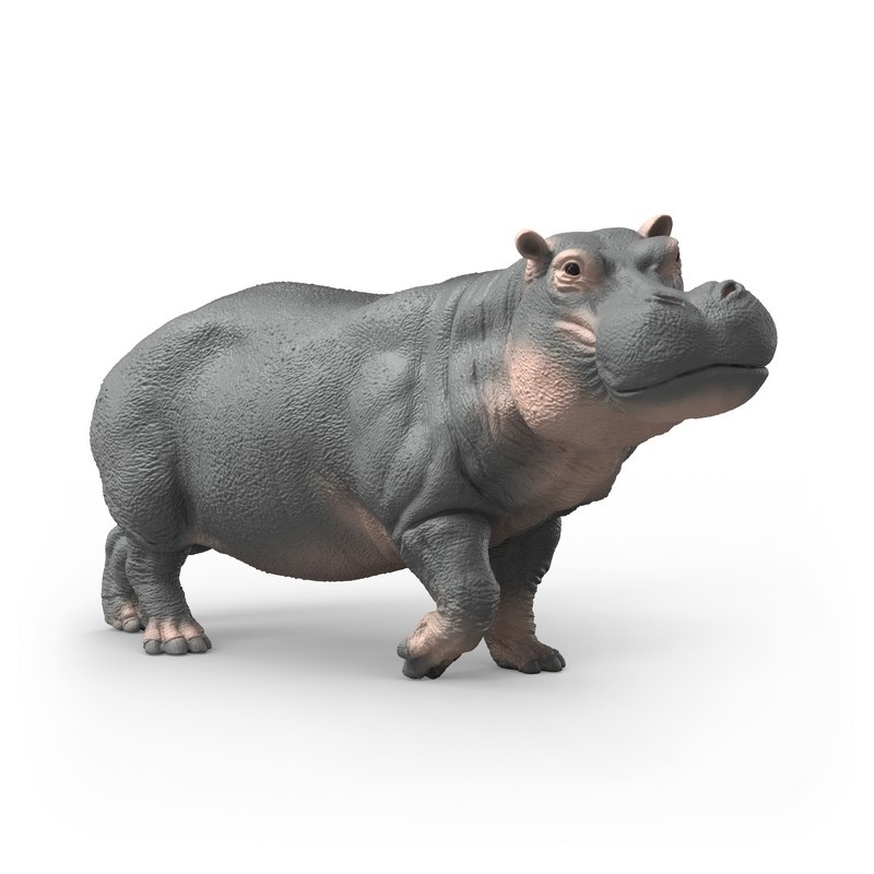 ¿Se supone que los hipopótamos están aquí? No se les ve. ¡Sí, ahí! Sólo sus pequeñas orejas y sus orificios nasales asoman fuera del agua. El hipopótamo dormita allí con fruición y se refresca. El sol africano puede ser bastante caluroso. Por eso, este gigante gris prefiere pasar su tiempo en el agua. Ahí se mueve casi ingrávido, ¡y eso con su enorme cuerpo! Sólo sale a tierra por la noche para pastar en un prado. Camina con su pesado cuerpo sobre patas cortas. Pero no hay que subestimarlo. El hipopótamo también puede adquirir bastante velocidad en tierra una vez que se pone en movimiento. ¡Cuidado!
