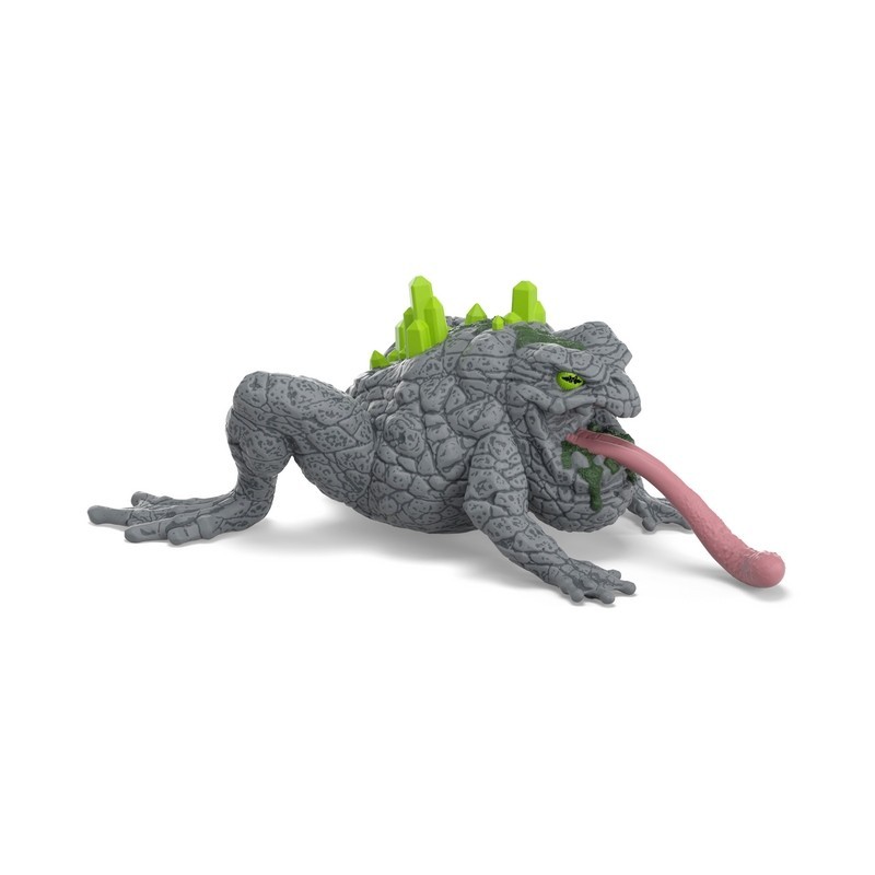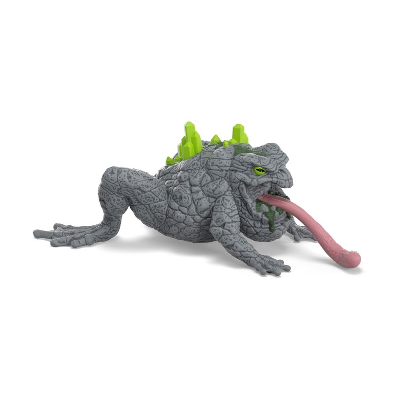 No hay que subestimar al sapo de piedra. Puede que no sea tan grande como las otras criaturas de ELDRADOR®, pero es el doble de malo. En el mundo de piedra, se agazapa inmóvil entre las rocas. Con su piel gris de lagarto, se camufla perfectamente y apenas es visible para los no iniciados. Si accidentalmente te acercas demasiado a él, de repente saca su larga y pegajosa lengua. La lengua es su arma más peligrosa. Simplemente envuelve a los oponentes para que ya no puedan escapar. Así que ¡mantén los ojos abiertos en el mundo de la piedra!