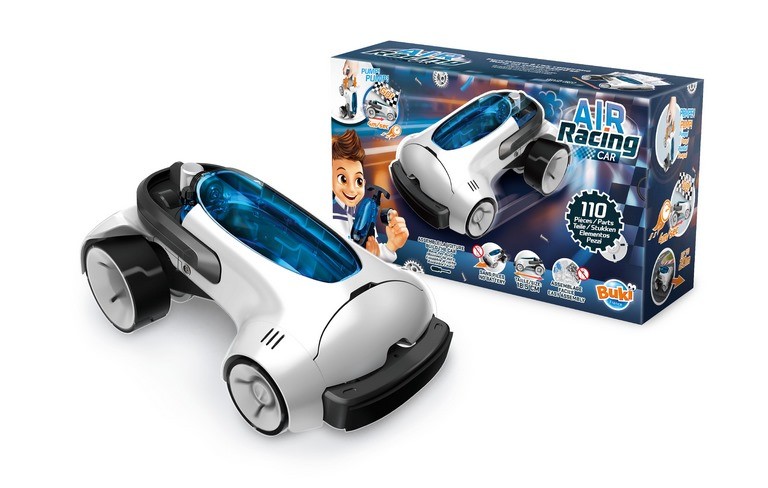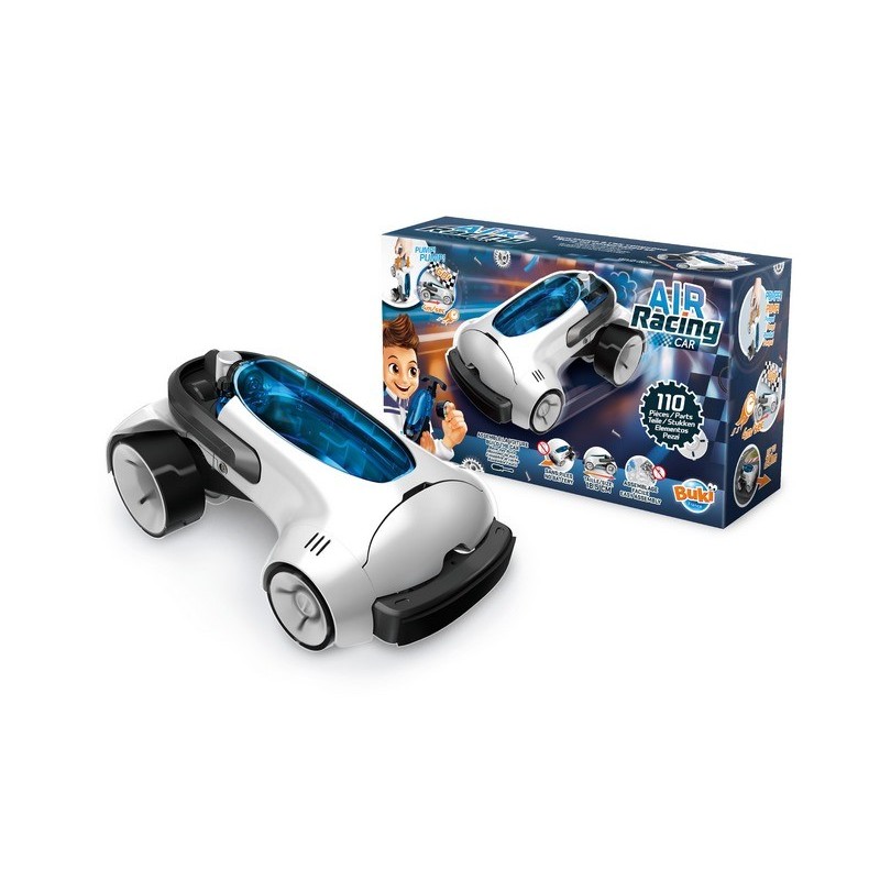 Ensambla las piezas y construye un coche de carreras alimentado por aire comprimido.