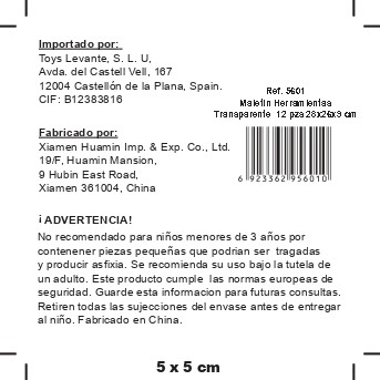 Incluye diversas herramientas de juguete diseñadas para estimular la imaginación, la coordinación y el aprendizaje a través del juego. Su práctico diseño permite transportar y guardar fácilmente todas las piezas. Fabricado en materiales resistentes y seguros para los más pequeños.