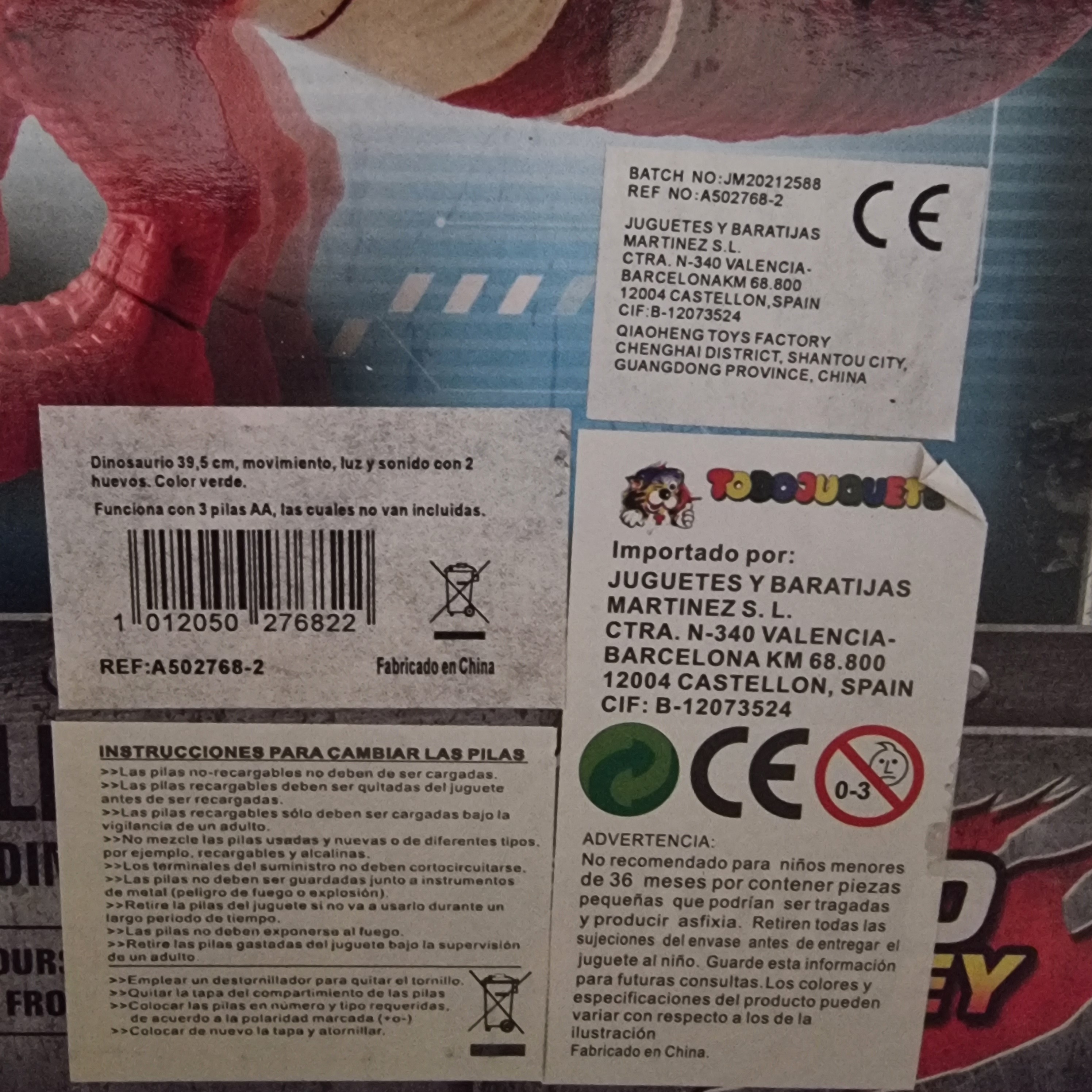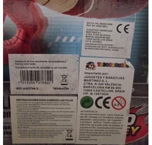 Funciona con 3 pilas AA, incluidas, y está recomendado para niños a partir de 3 años.