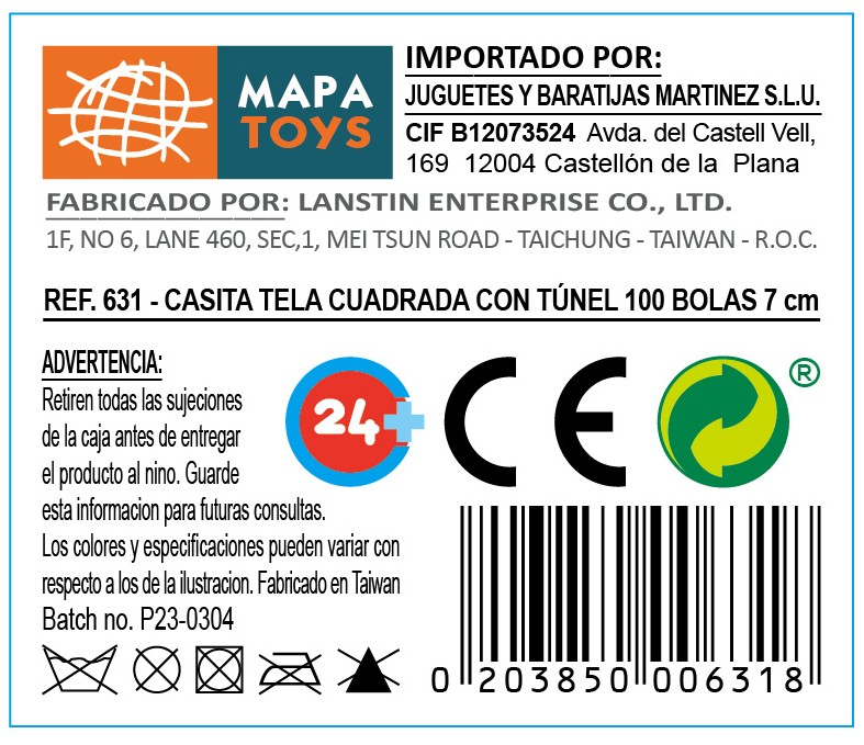 Casita Tela Tricolor con Tunel +100 bolas 7cm 3en1