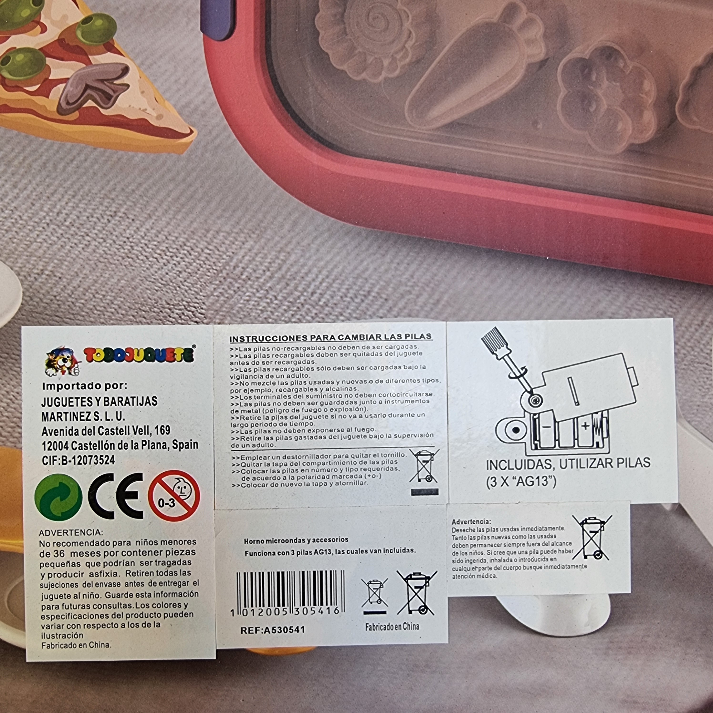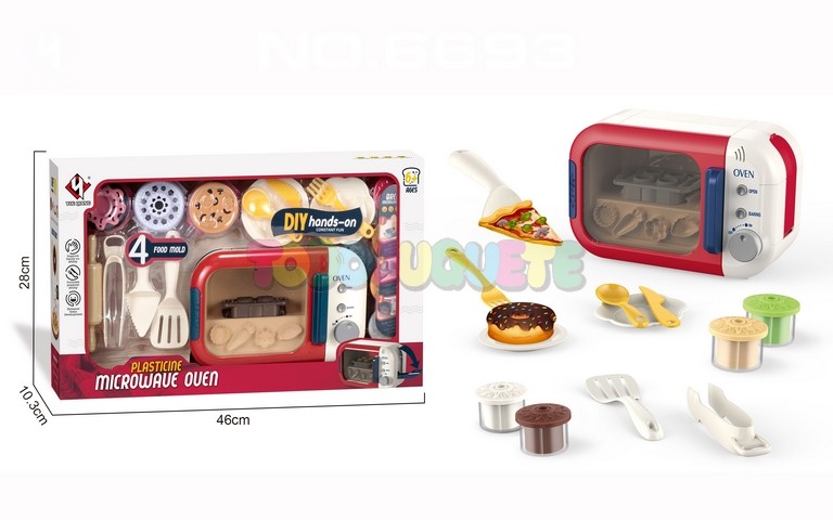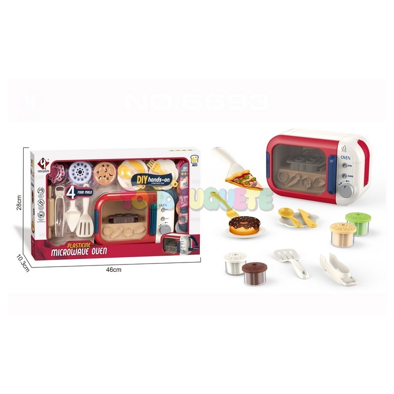 Divertido horno microondas con cuatro botes de pasta para modelar.