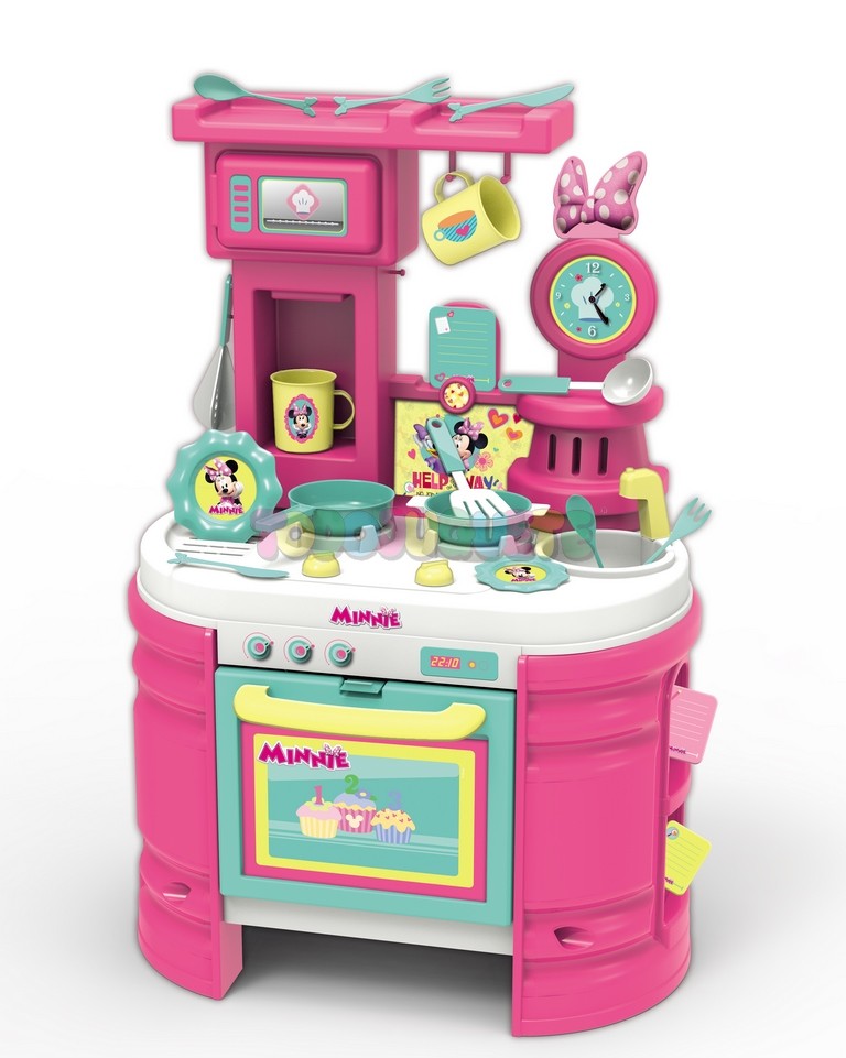 Con esta súper cocina de Minnie Mouse todos los platos te saldrán de ¡rechupete! Esta cocinita de colores muy llamativos con simpáticas pegatinas de Minnie y sus amigos será ideal para jugar los más peques de casa. Con 15 accesorios que no podrán faltar en tu cocina. Mide 72 centímetros de alto. Este juguete es recomendado para mayores de 3 años.