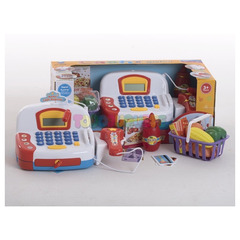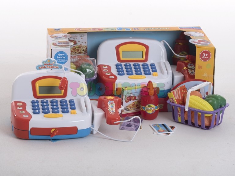 Caja Registradora con Micro y Cesta con Alimentos