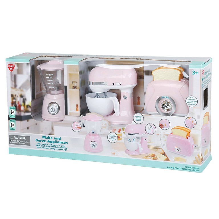 La batidora invita a mezclarlo todo con solo pulsar un botón, la amasadora anima a poner las manos en la masa y comenzar a preparar deliciosos postres, y la tostadora permite bajar la palanca y esperar a que las tostadas salten como en una cocina real.