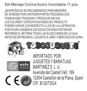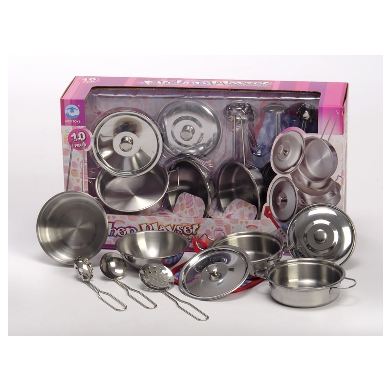 Set de menaje de cocina infantil 10 piezas de acero inoxidable.