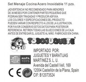 Este set incluye 10 piezas realistas de menaje de cocina fabricadas en acero inoxidable, ideales para juegos de imitación. Perfecto para que los niños desarrollen la creatividad, el juego simbólico y las habilidades motoras mientras se divierten recreando situaciones del día a día en la cocina.