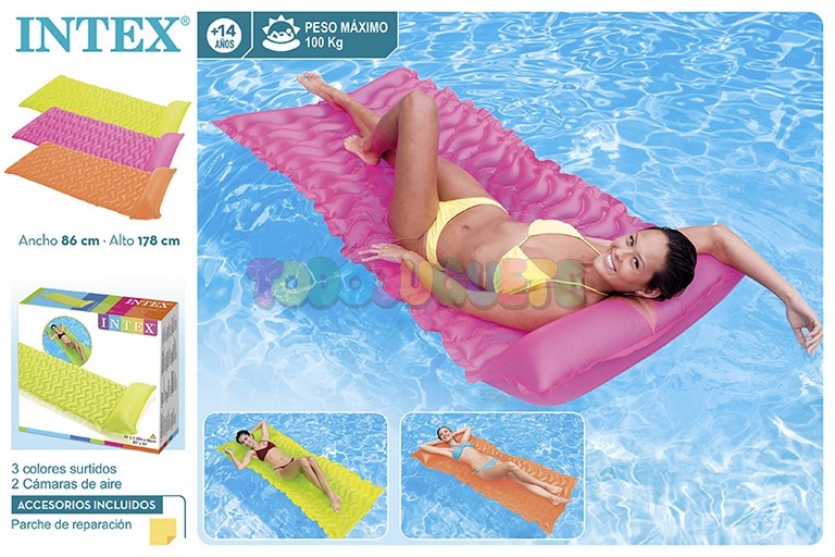 Colchoneta Ocho Doble 198x117 IntexPrecio 22,95 €Colchoneta neón 3 colores 183x76 cmPrecio 5,75 €Colchoneta Cool Grey Lounge Premium 99x191Precio 32,95 €