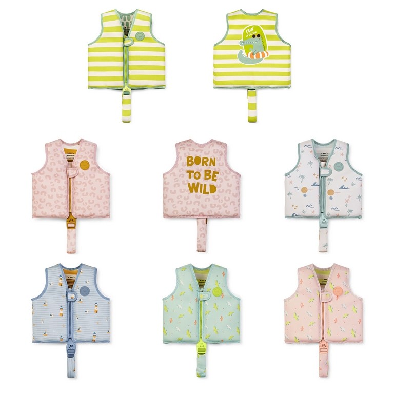 Chaleco flotador de aprendizaje que dispone de 8 compartimentos con 3 piezas de flotación cada uno que pueden retirarse a medida que el niño coja soltura en el agua.