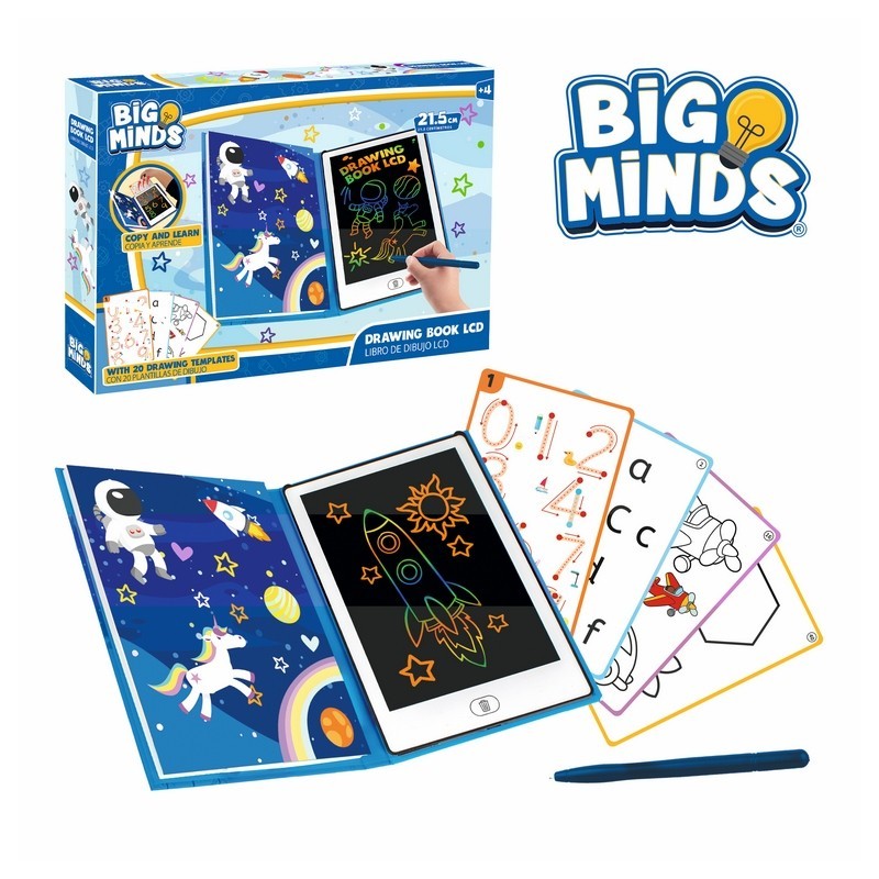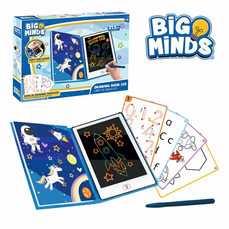 ¡Pon a prueba tu imaginación con el Libro de Dibujo LCD! Demuestra tus habilidades pictóricas y dibuja libremente lo que quieras. Crea diseños utilizando las plantillas prediseñadas con las que aprenderás las letras, números y formas. Cópialas con precisión y aprende a dibujar nuevas formas. ¡Tus creaciones cambian de color como un arcoíris! ¡Es el juguete perfecto para explorar tu imaginación en cualquier momento y lugar!