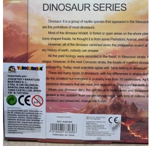 Con una medida aproximada de 23 cm de largo y 11 cm de alto, este dinosaurio es perfecto para el juego y la imaginación.