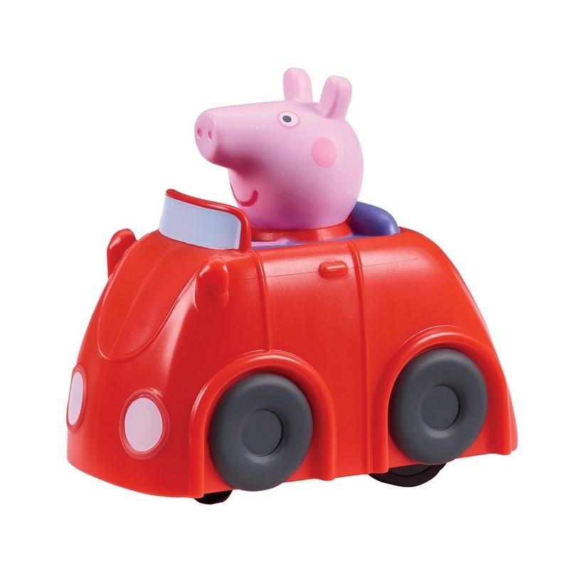 Circuito de Peppa Pig con coche rojo motorizado. Carretera compuesta por 8 piezas. La caja además contiene una tienda de helados 2 árboles. un buzón y una valla.
