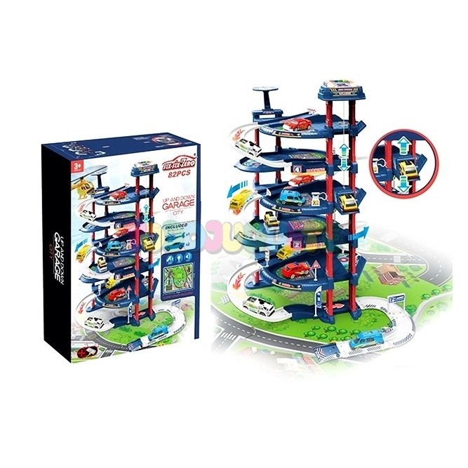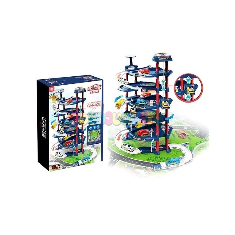 Parking de 5 plantas con 82 piezas, luces, sonidos, helipuerto y tapete ciudad de 78x58 cm, ideal para niños a partir de 3 años.