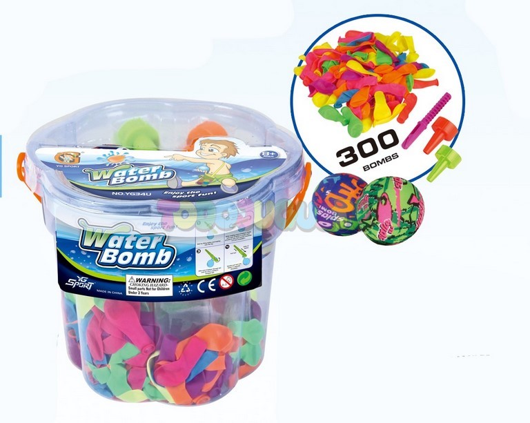 Cubo con 300 Globos de agua y 2 Pelotas Acuáticas