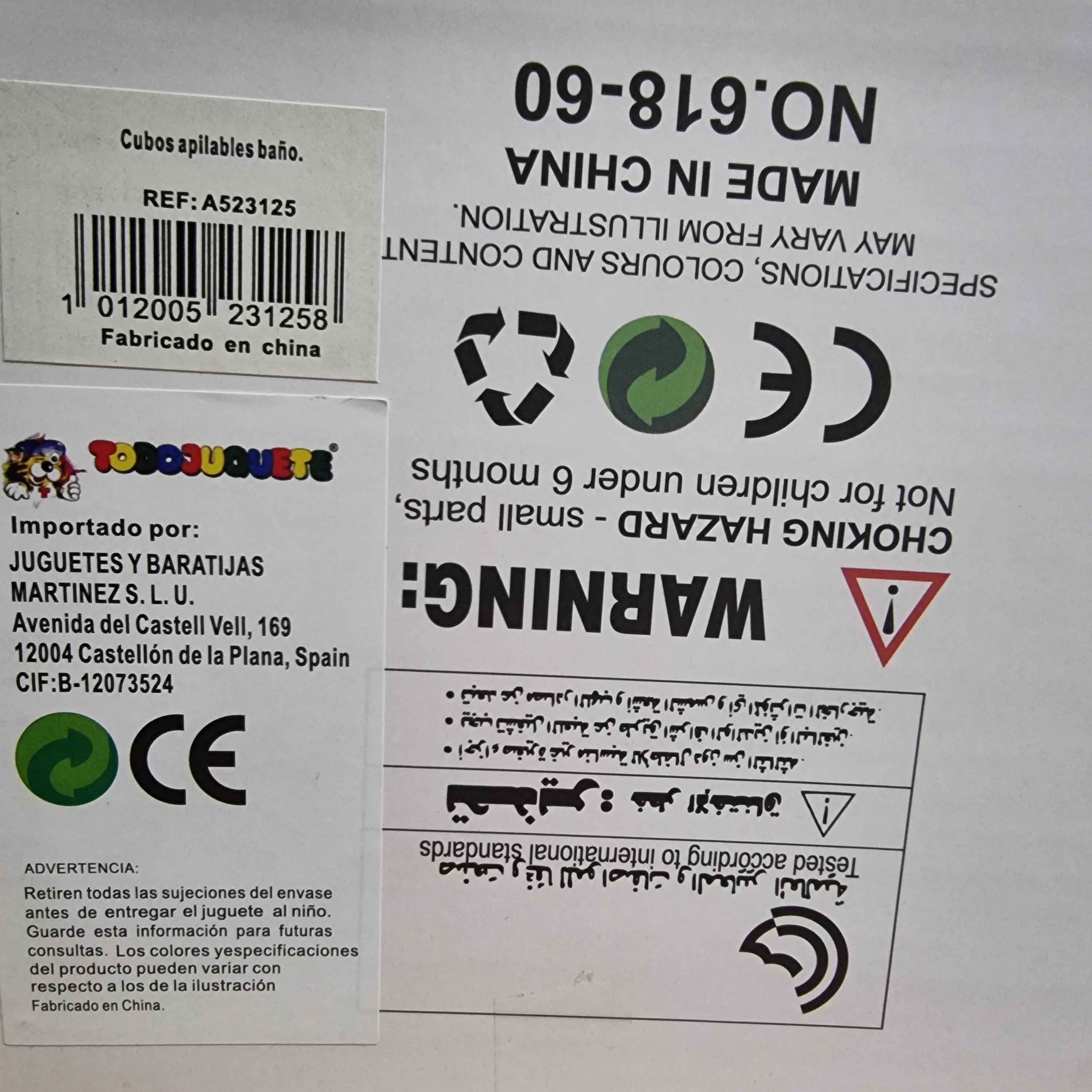 Set 6 cubos apilables con Bola Sonajero Baño Baby