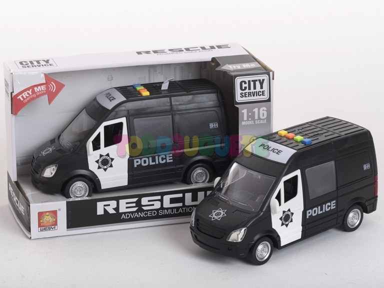 Furgon Policia Negro con Luz y Sonidos 1:16 Rescue