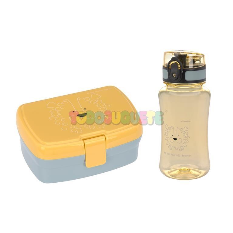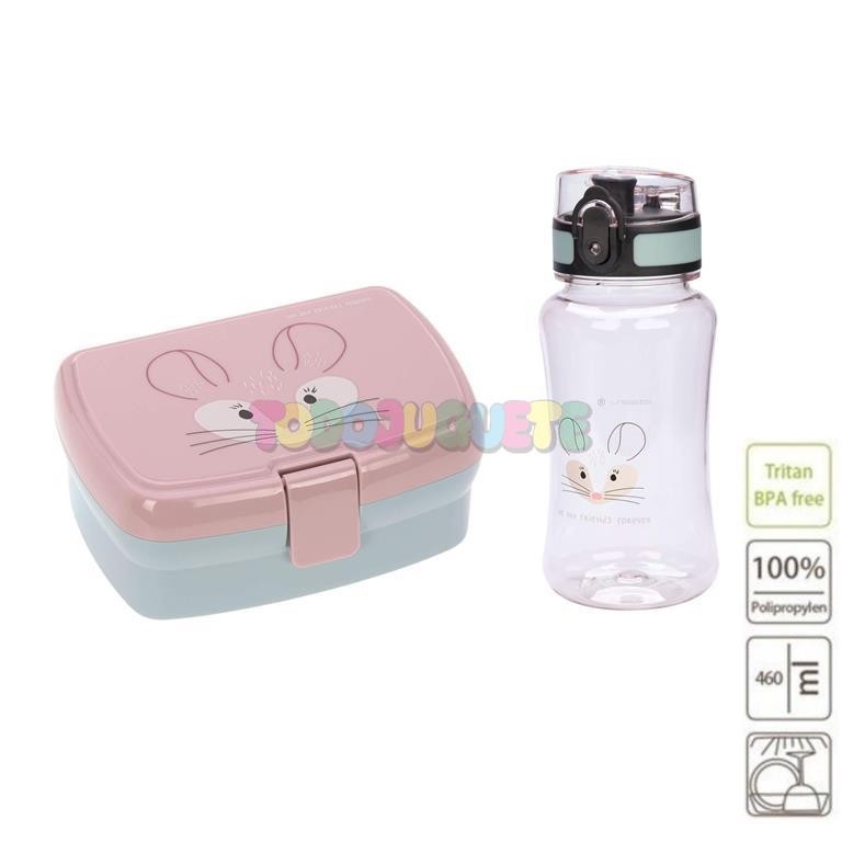 Set de fiambrera y botella con lindos motivos de animales.