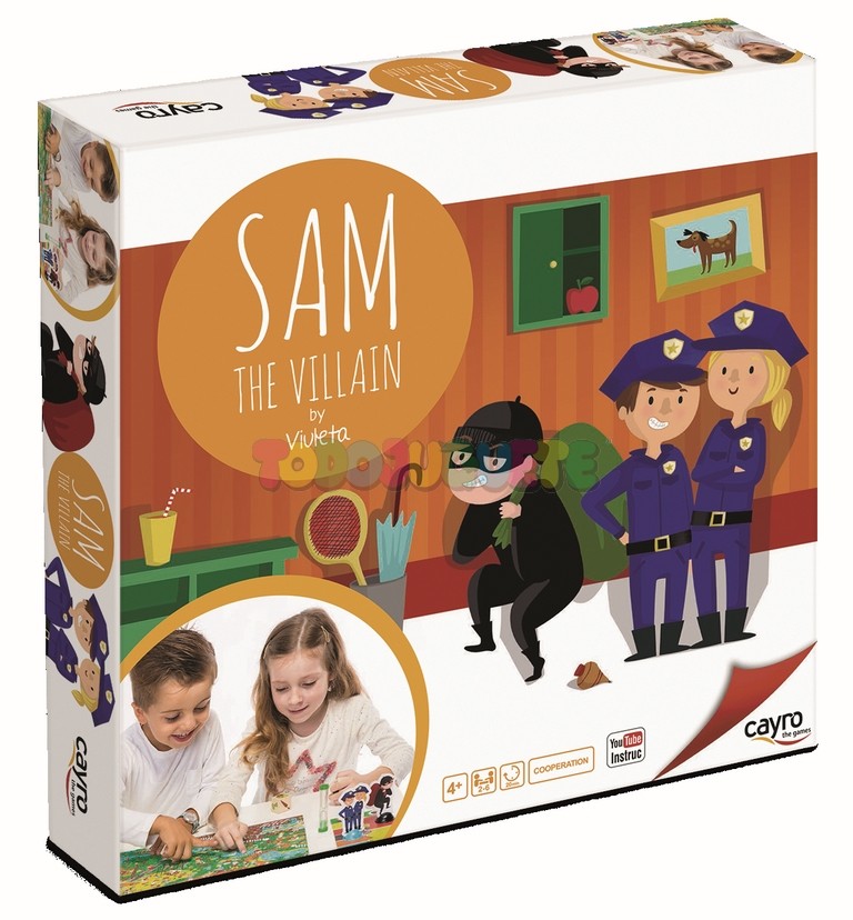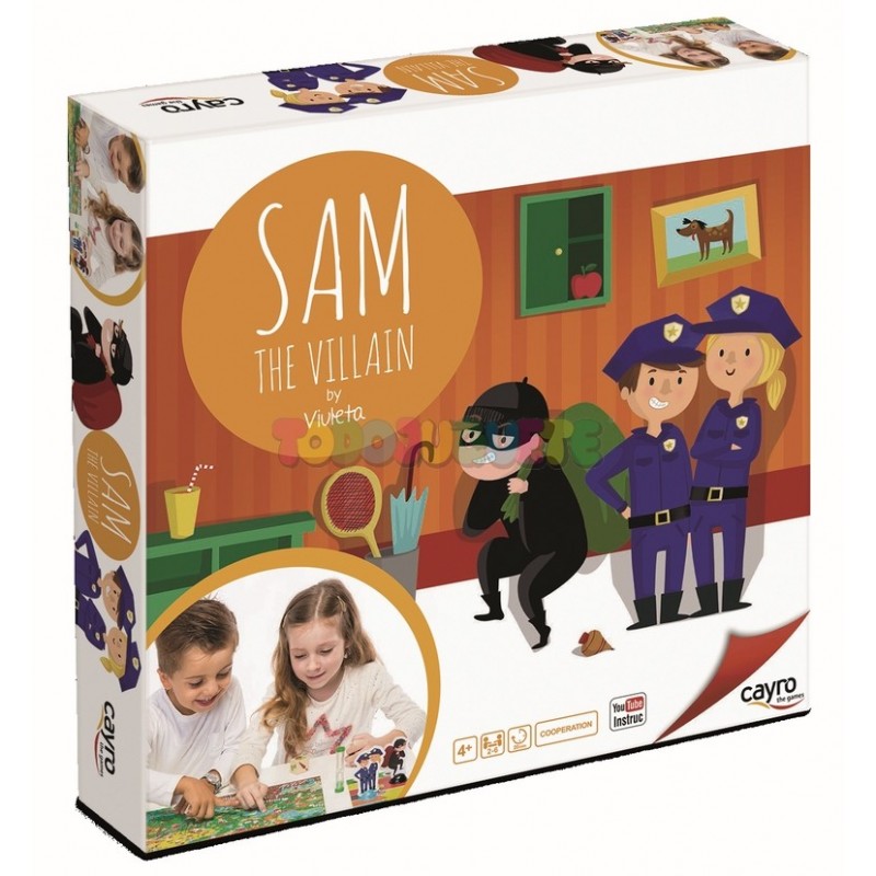 En Sam the Villain, todos los jugadores somos la policía y tenemos que ser capaces de coger al ladrón antes de que cometa sus últimos 4 atracos y se fugue a una isla perdida con todo su botín. Además, contamos con la ayuda del dado soplón que nos chiva cuales son los objetos que va a robar el ladrón en cada golpe. Si conseguimos frustrarle 8 atracos, con las pruebas que va dejando, conseguiremos deternerlo y meterlo en la cárcel.
