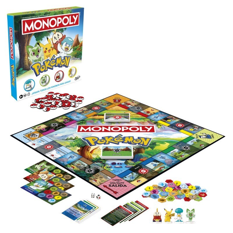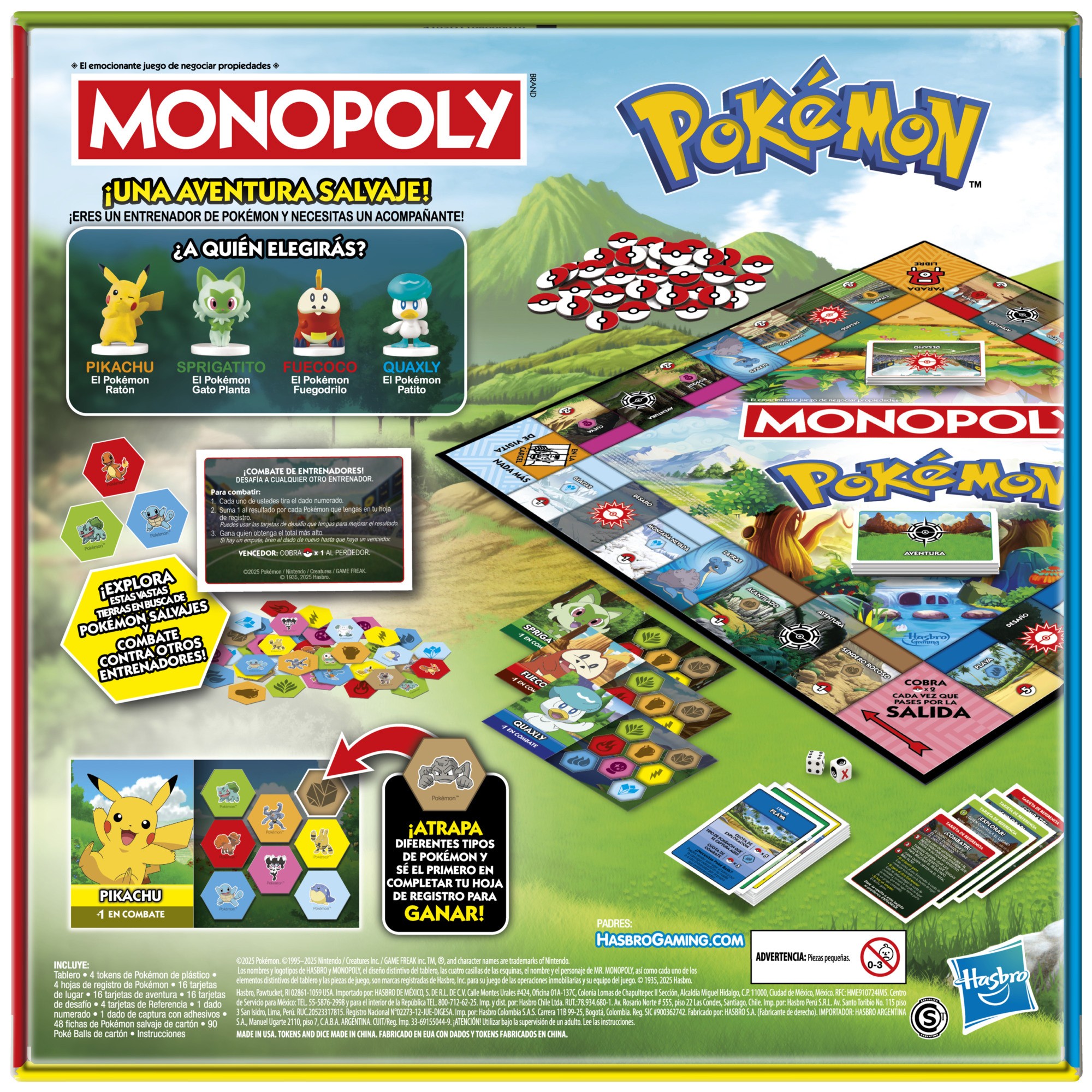 ¡Atrapa todos los Pokémon para ganar! El juego Monopoly Edición Pokémon combina el clásico juego Monopoly con la emocionante acción de Pokémon. Juega como un Entrenador de Pokémon que explora vastos territorios junto a su compañero Pokémon. En este divertido juego para niños,