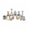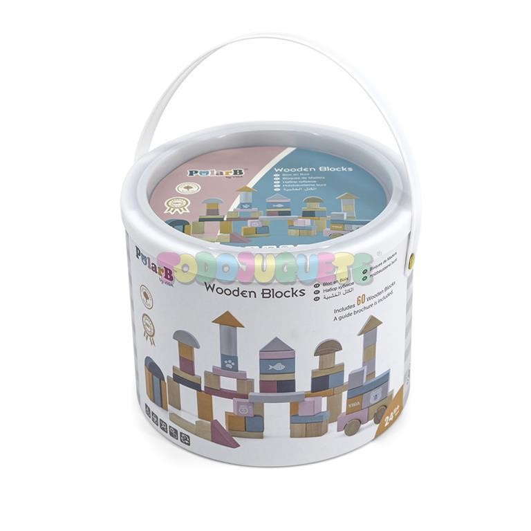 Bloques de madera suaves y de colores pastel ideales para aprender a apilar, construir y equilibrar con diversas formas, estimulando la imaginación, la creatividad y desarrollando habilidades motoras.