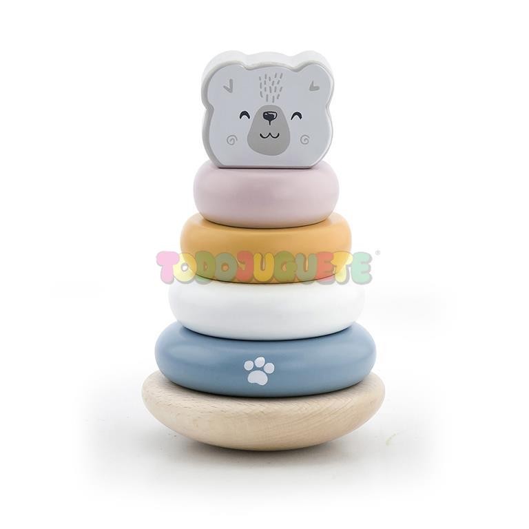 Juguete de aros apilables ideal para niños pequeños que empiezan a construir torres con bloques.