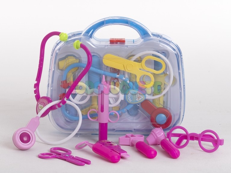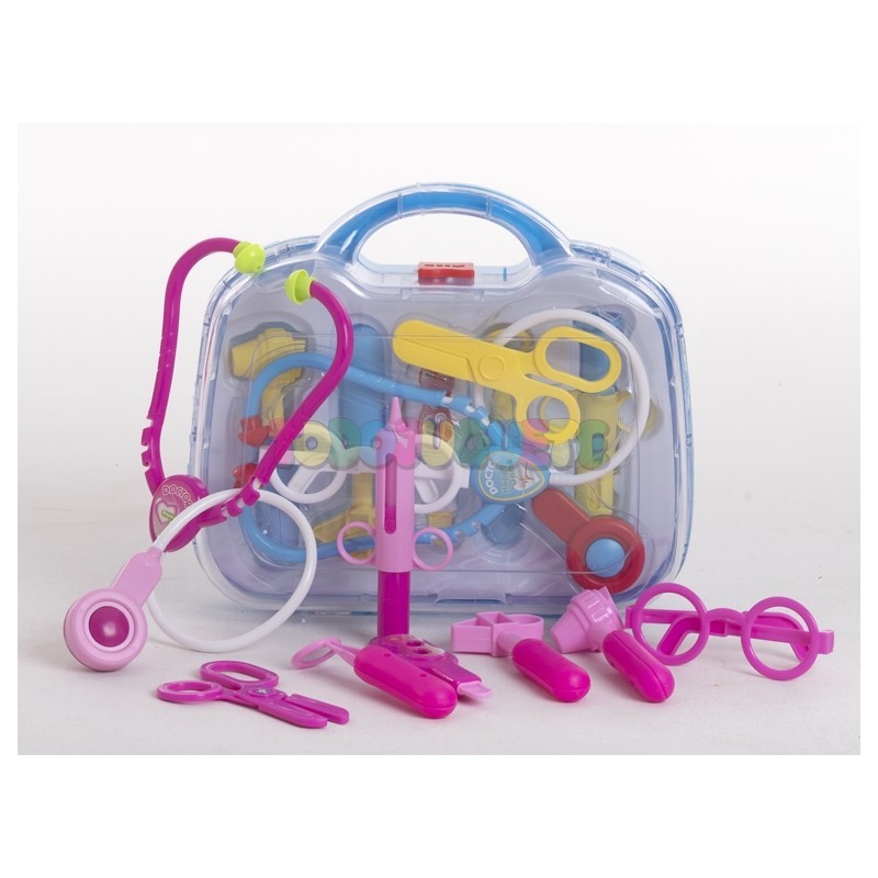 Divertido maletín de doctor fabricado en plástico duro transparente, ideal para fomentar el juego simbólico y la imaginación de los más pequeños.