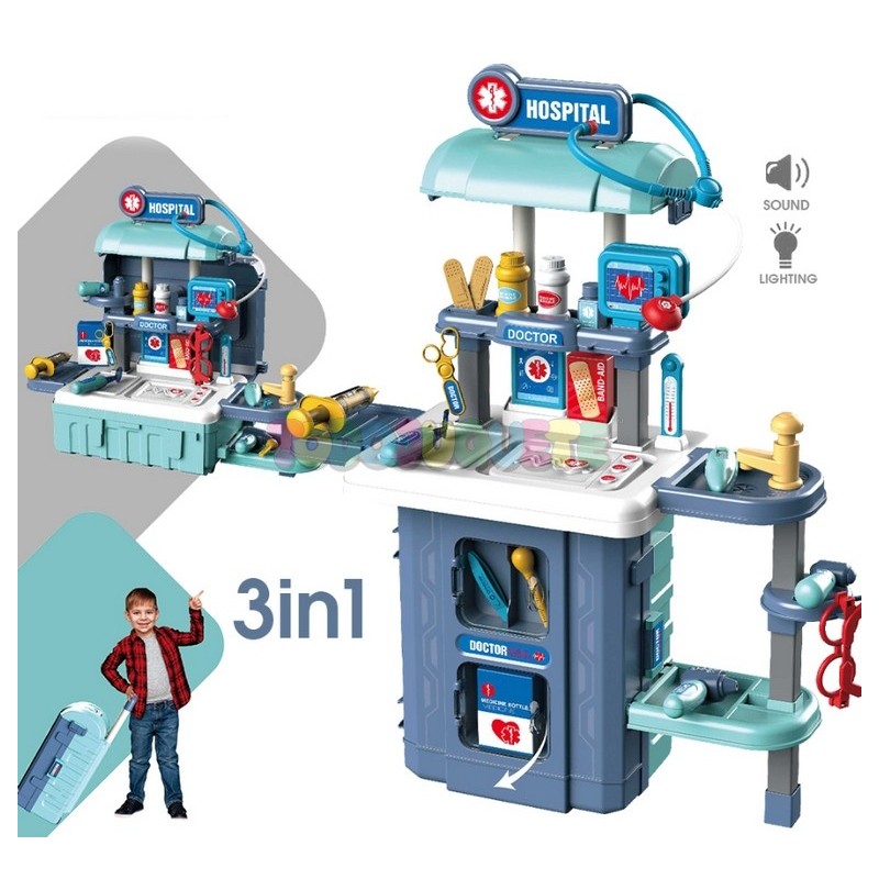 Carrito Doctor 38 pzs 3 en 1 Azul Mobile Hospital