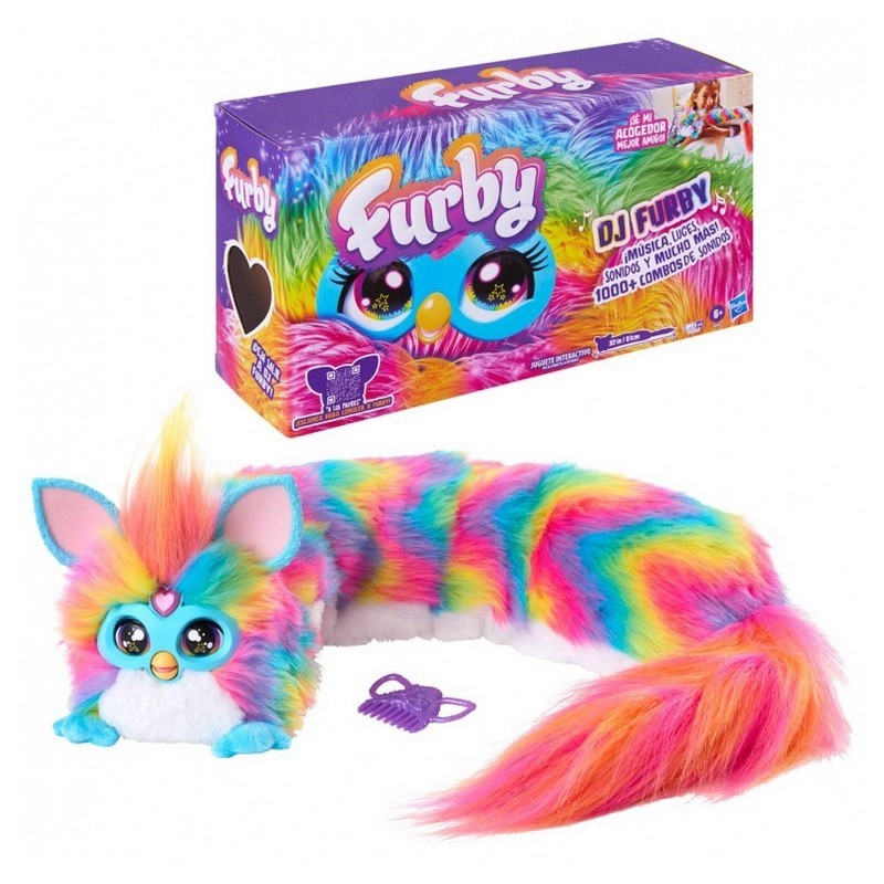 Furby Dj Rainbow, más de 1000 interacciones, cuerpo arco iris luminoso y 5 modos de juego. E Funciona con pilas.