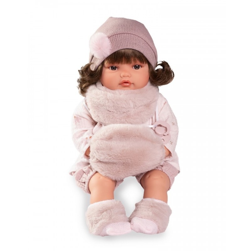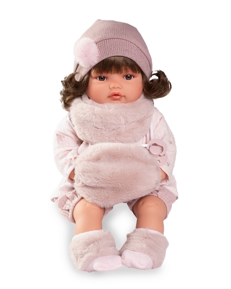 Además, Beni es una muñeca interactiva con mecanismo de llanto: cuando le quitas el chupete, llora como un bebé real, y se calma al ponérselo de nuevo.
