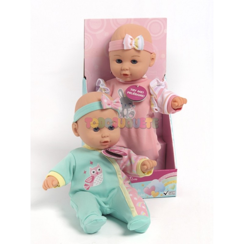 Bebé Llorón Lágrimas Mágicas Beach Babies SurtidoPrecio 13,00 €Bebé Llorón Care Fantasy W2 LenaPrecio 24,99 €Muñeco Bebé 30cm Orinal Musical con Peces SurtidosPrecio 29,95 €Muñeca RN Tina Llorona 44cm Pelele Rosa CapuchaPrecio 59,96 €