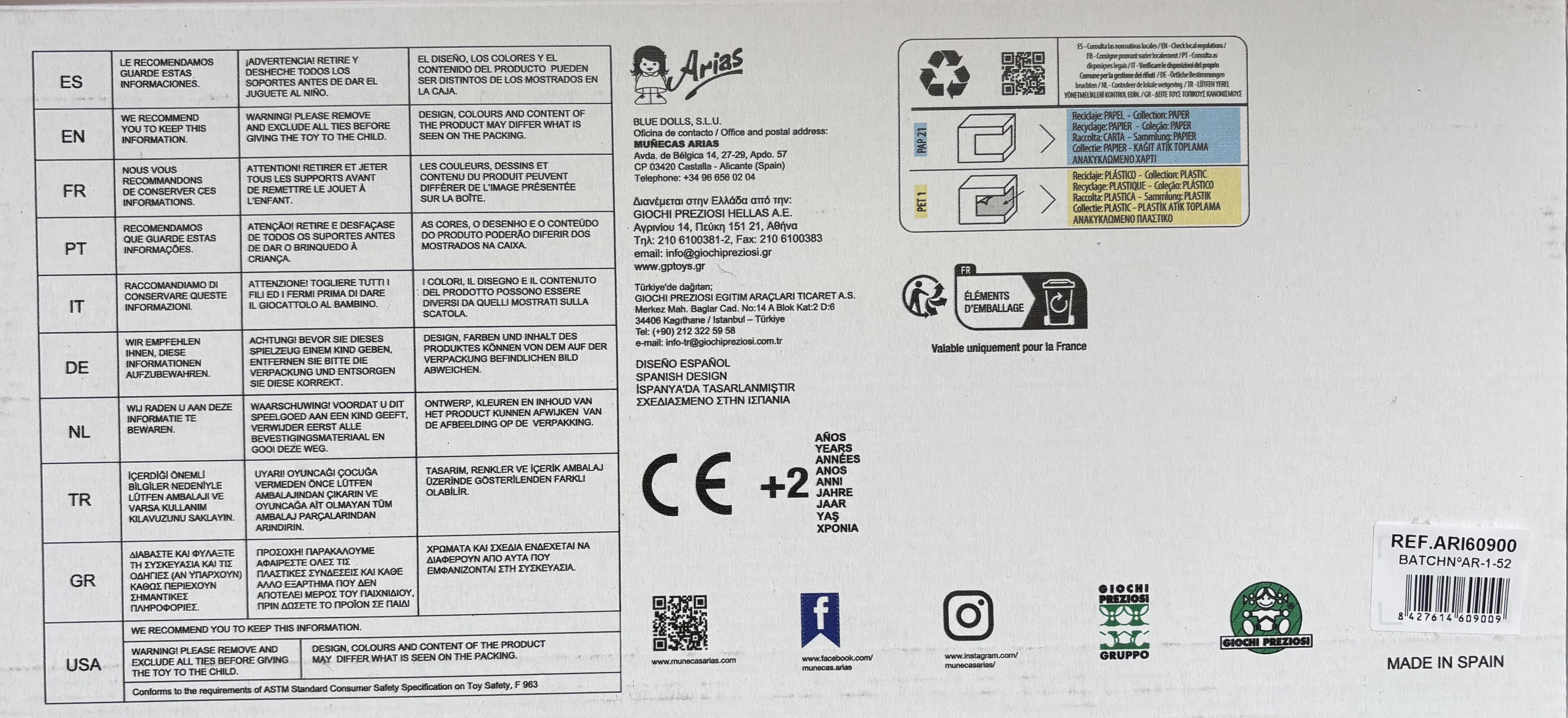Muñeca 35 cm en Trona de 48 cm Arcoiris 2 surtidos