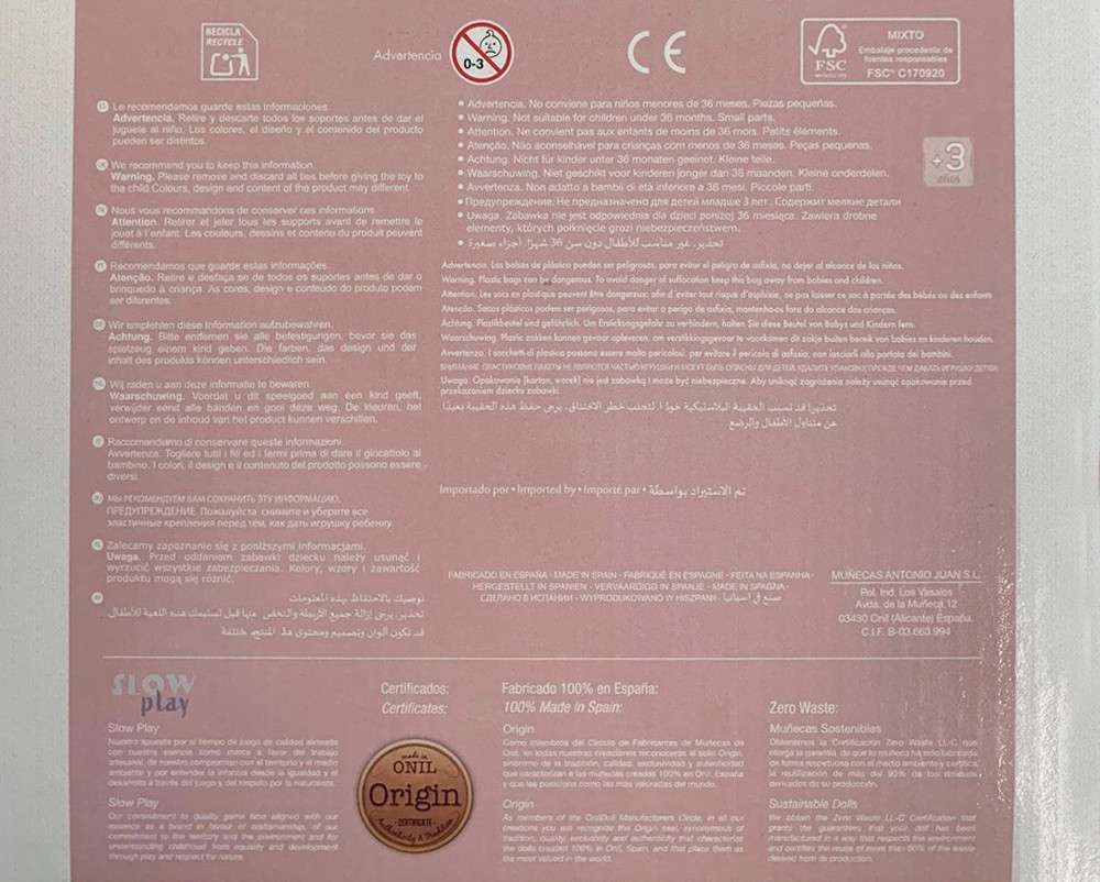 Muñeco Mini Pabletes con Saquito Rosa o AzulPrecio 29,95 €Muñeco Pepote super Heroe sdos. 26 cms.Precio 12,95 €Muñeca Piu 25cm Lazo Rosa EstuchePrecio base 26,95 € Precio 19,95 €Muñeca Piu 25cm Bebé Rosa EstuchePrecio base 26,95 € Precio 19,95 €Muñeco Duendys Mágicos 24cm SurtidosPrecio 19,95 €Antonio Juan Mufly Vestido Colores 21cm Surtido ExPrecio 20,50 €Muñeca bebé lista para el baño 38cm desnudaPrecio 9,95 €Muñeco Bebé 30cm con Bañera, Flotador y AccesoriosPrecio base 24,95 € Precio 21,95 €Set 2 Muñecos Bebé Mellizos 35cm y Accesorios 2sdoPrecio 37,95 €Antonio Juan Recién Nacida Pipa Manta Acolchada 42Precio 57,50 €