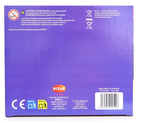 Incluye: Mamá Bunny, los mini conejitos, una manta y un biberón.