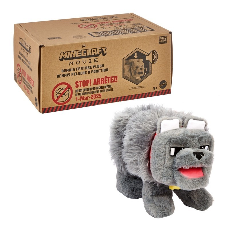 Peluche inspirado en Dennis el lobo, personaje de la película de acción real inspirada en el videojuego Minecraft.