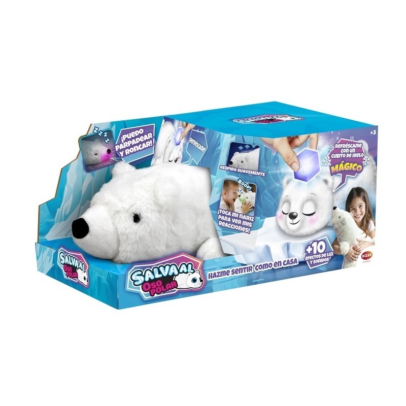 contento, verde cuando está dormido y rosa cuando tiene demasiado calor. ¡En ese momento necesita tu ayuda! Usa el cubito de hielo mágico incluido para frotar suavemente su cabeza y verlo iluminarse mientras enfrías al oso polar de manera mágica. Divertido, educativo y lleno de ternura, Salva al Oso.