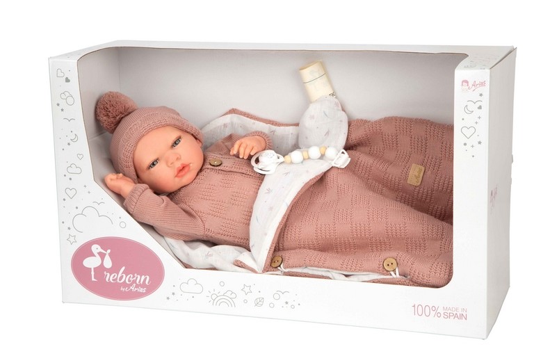 Reborn Nadia 40cm Rosa con Manta y Peluche