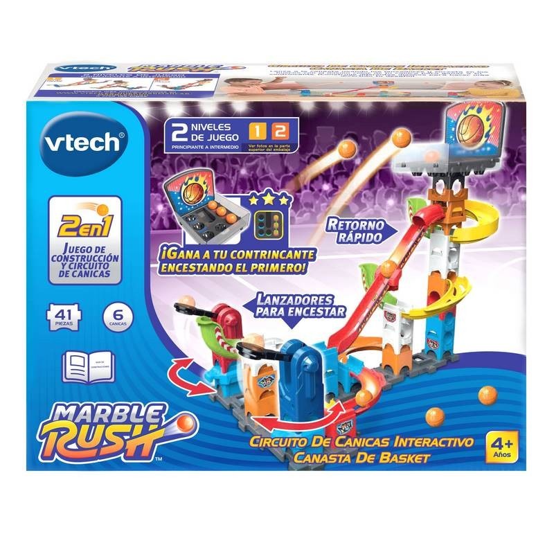 La Canasta de Basket Marble Rush de VTech es un emocionante circuito interactivo diseñado para desafiar la creatividad y la destreza de niños a partir de 4 años. Con 41 piezas y 6 canicas de baloncesto, este set combina la diversión del deporte con el ingenio de los circuitos Marble Rush, ofreciendo horas de entretenimiento en solitario o en competición. Los pequeños podrán construir y personalizar su propio circuito, mientras mejoran su coordinación y habilidades estratégicas.