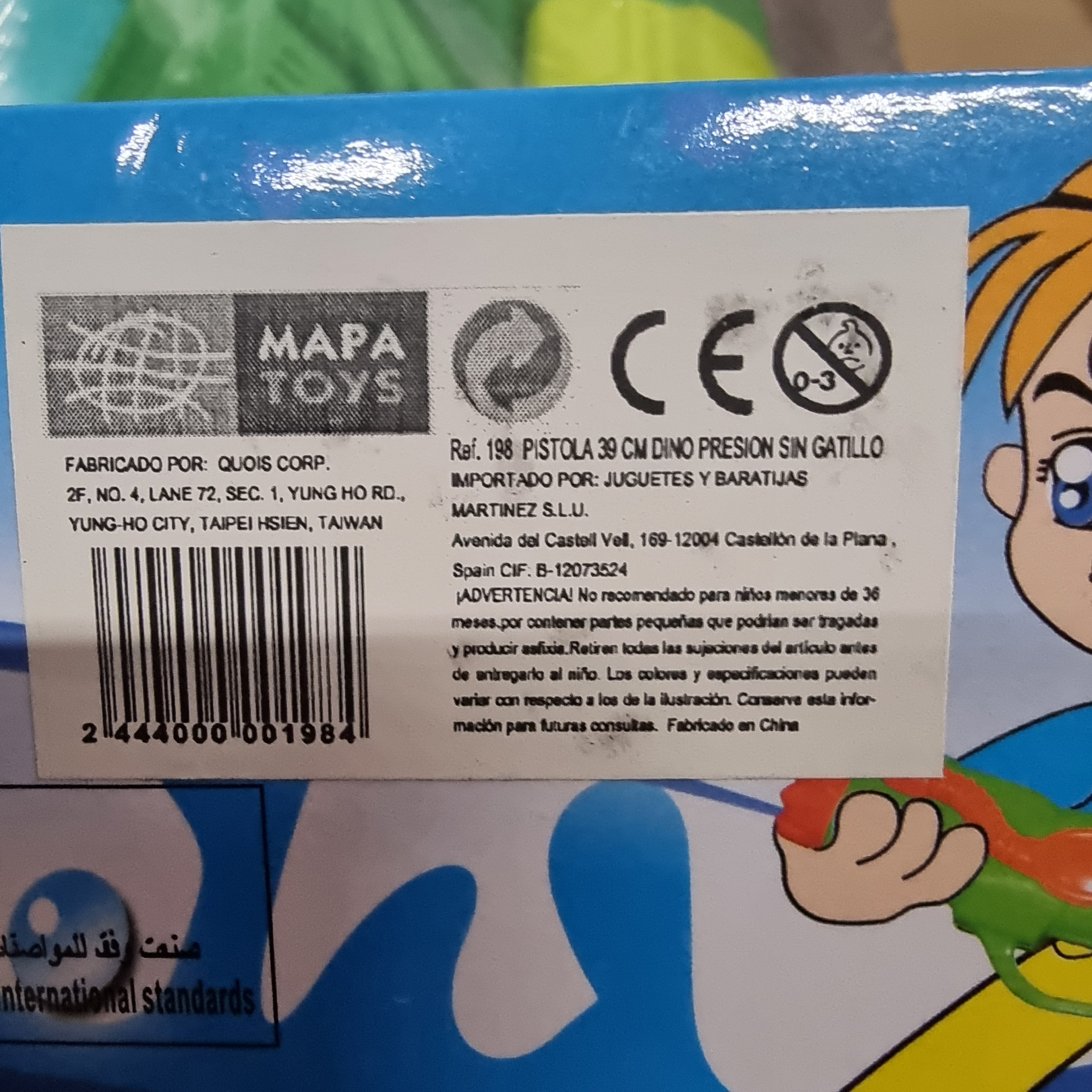 Pistola Agua Dinosaurio 41cm surtida Aqua World