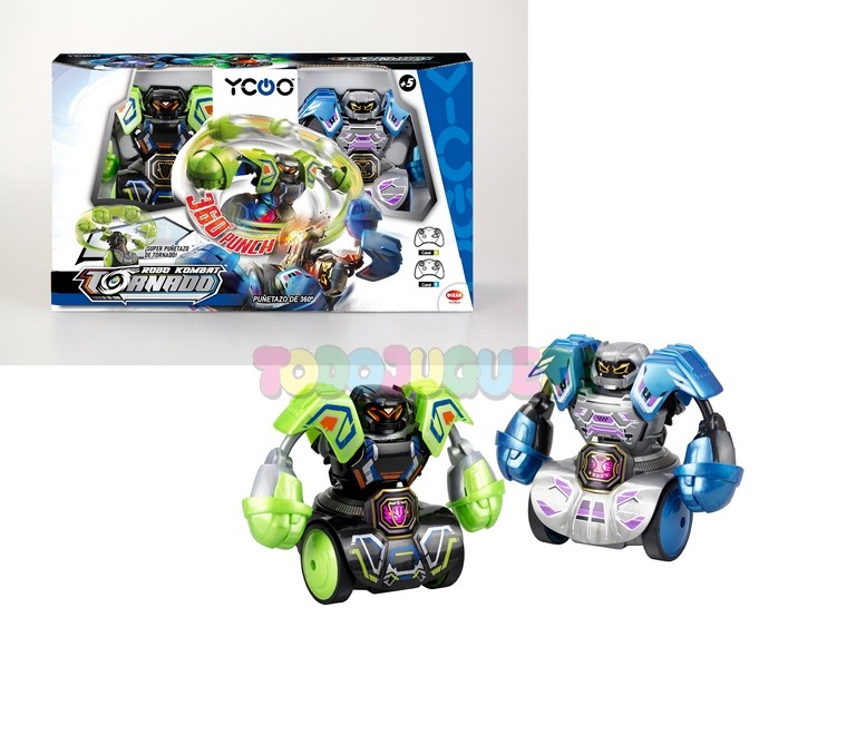 Prepárate para una aventura increíble con Robo Kombat Tornado, ¡donde la lucha entre robots alcanza nuevas cotas con su Puñetazo de 360 grados! Puñetazo a la izquierda, puñetazo a la derecha: ¡cada golpe es un poderoso giro! Experimenta el nuevo y emocionante puñetazo combinado, ¡como un tornado! Con geniales efectos de sonido. Incluye cinturón de potencia con indicador LED. Los robots tienen armaduras desmontables, ¡desmóntalas todas para conseguir la victoria fi nal! Dos modos de juego: Modo entrenamiento o Modo competición. Incluye: 2
