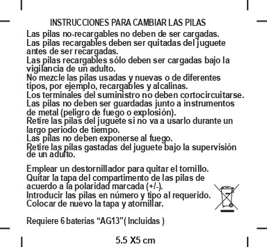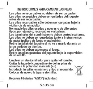 Funciona con 6 pilas AG13 incluidas, listo para usar desde el primer momento.