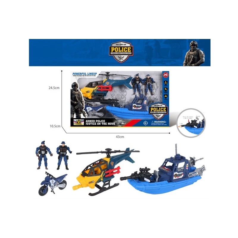 Set Policía Lancha Helicóptero y Moto Urban Armed